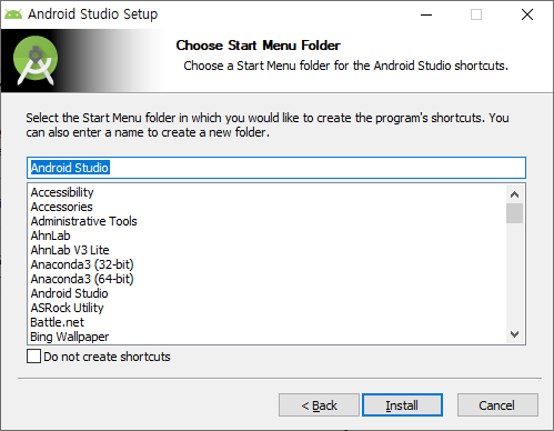 메뉴폴더 정하시고 인스톨을 누르면 됩니다.